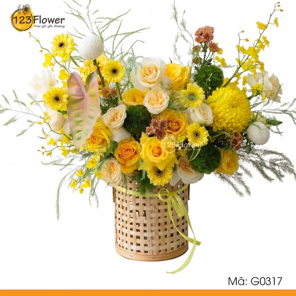 123Flower Florist khuyến khích khách hàng để những nghệ nhân thiết kế hoa của 123Flower có quyền tự do sáng tác giúp tận dụng tối đa được vẻ đẹp đa dạng của các loại hoa đang nở rộ trong mùa.